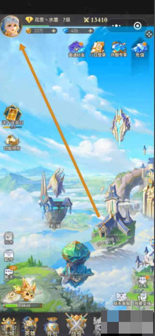 在游戲界面,點擊角色頭像圖標