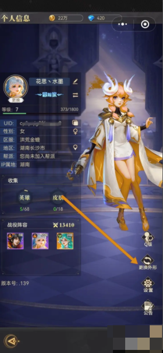 進入打開界面,點擊更換外形