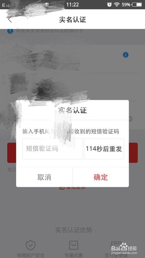 6.最后會給你預留的手機號發(fā)送一個短信驗證碼,然后點擊確定即可實名認證成功。
