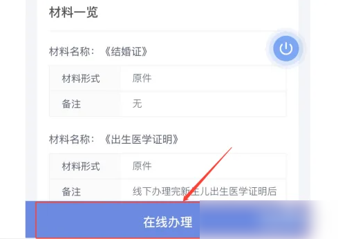 進(jìn)入新生兒出生頁(yè)面,點(diǎn)擊在線辦理