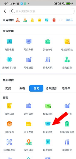 然后在查詢(xún)中找到電量電費(fèi)并點(diǎn)擊