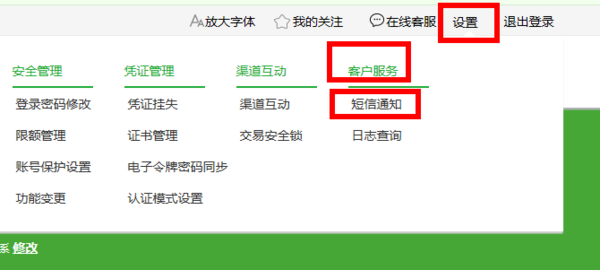 5、進(jìn)入短信通知定制查詢(xún)頁(yè)面,可通過(guò)此功能開(kāi)通/關(guān)閉賬戶(hù)變動(dòng)通知。