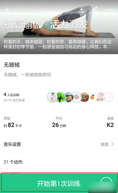 點擊合適自己的訓(xùn)練課程,進入相應(yīng)的頁面后,點擊參加訓(xùn)練,然后再點擊開始第一次訓(xùn)練,就可以進行訓(xùn)練了。