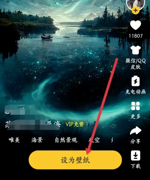在彈出的頁面中,點(diǎn)擊下面的設(shè)為壁紙即可。