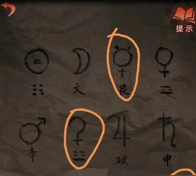 6、在房間里面打開羅盤,同樣方式顯示是:陰陰陽貪艮,去院子里孔明燈上面找對應(yīng)符號,如下圖,然后回房間里面在萬花筒右邊的盒子用符號打開盒子,獲得膠水。