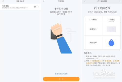 綁定小米運(yùn)動(dòng)后,升級(jí)到最新版本(手環(huán))固件,在首頁(yè)“我的”找到“實(shí)驗(yàn)室”開啟“門禁”卡。按照提示一次進(jìn)行。