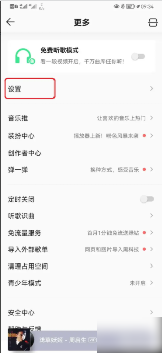 在更多頁面,選擇【設置】選項。