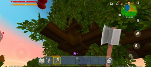 2、走進(jìn)站到櫻桃樹的底下。抬頭對(duì)準(zhǔn)了櫻桃樹的細(xì)樹枝,用斧子或者不要斧子也行點(diǎn)擊它。