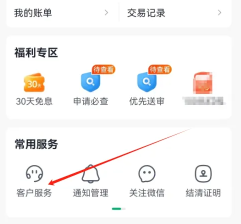 打開安卓版眾安貸的個(gè)人中心,點(diǎn)擊客戶服務(wù)。