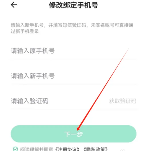 打開修改綁定手機(jī)號(hào)頁(yè)面