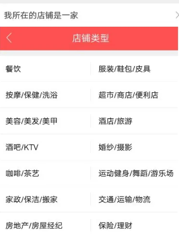 然后點(diǎn)擊“我所在的店鋪是一家”選項(xiàng)選擇店鋪的類型,,點(diǎn)擊“我所在的店鋪名稱”填入詳細(xì)的名稱