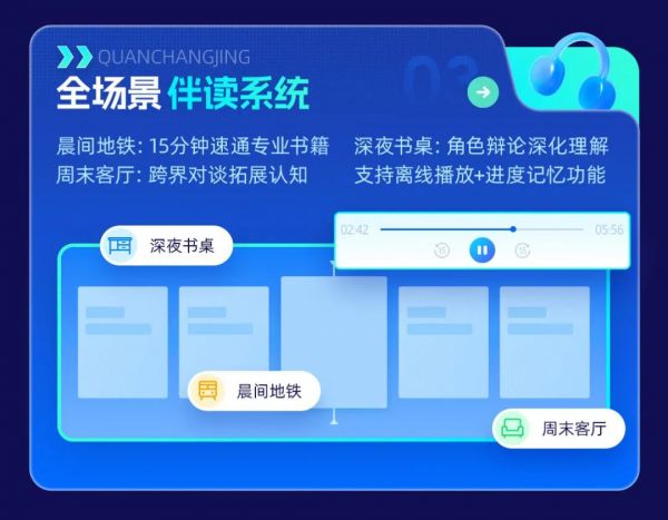 流暢聽(tīng)書體驗(yàn),適配地鐵、駕駛等無(wú)網(wǎng)絡(luò)環(huán)境,讓聽(tīng)書成為通勤路上可靠的知識(shí)伴侶。