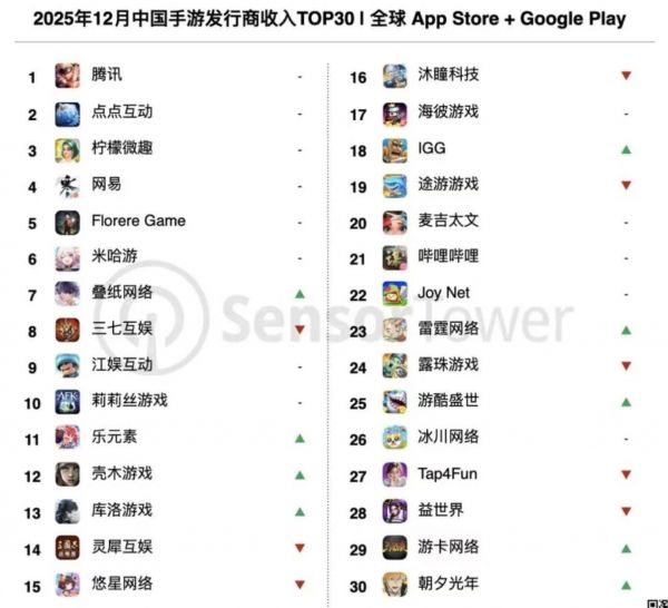 《王者榮耀》2025年吸金超20億美元,騰訊再登頂手游發(fā)行商收入榜首