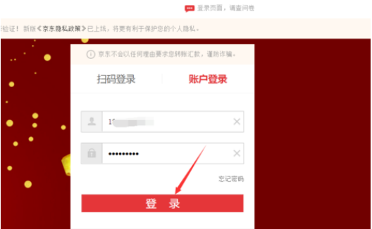 2、在打開的京東登錄頁面里,直接輸入帳號和密碼,然后點擊登錄,如下圖所示。