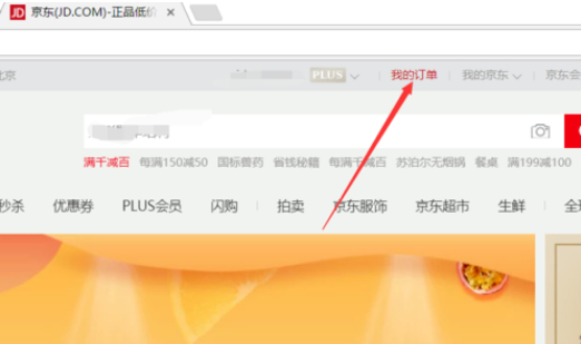 3、成功登錄京東后跳轉(zhuǎn)到首頁,然后點擊首頁上的【我的訂單】,如下圖所示。