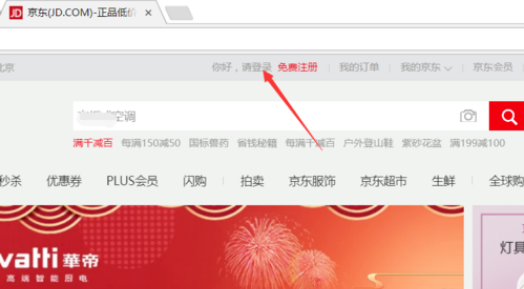1、打開京東官方首頁,然后點擊上面的【請登錄】,如下圖所示。