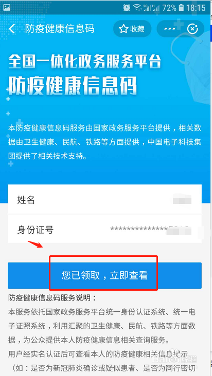 提交自己的身份信息和癥狀信息后,即可領取防疫健康信息碼。