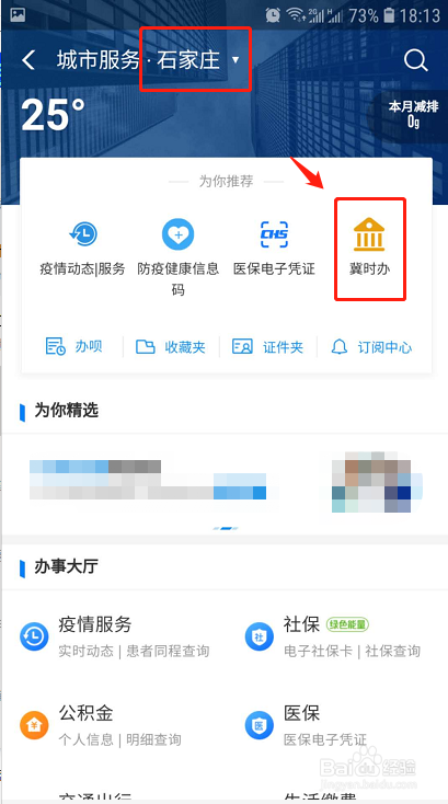 因為自己所在的城市或準備前往的目的地,點擊“冀時辦”,進行健康通行碼申請。