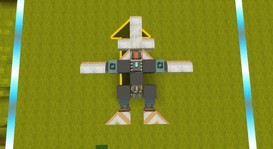 之后我們在駕駛座后面擺放無限引擎,并且在引擎兩邊安裝轉(zhuǎn)軸方塊和機(jī)翼: