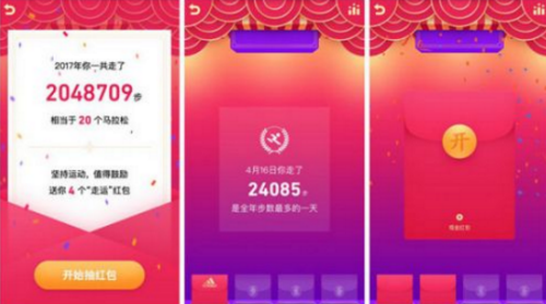 *是在除夕(2月15日)當(dāng)天晚上19:00整,QQ界面會出現(xiàn)一個(gè)掛件,用戶可以點(diǎn)擊掛件查看去年的運(yùn)動步數(shù)總結(jié),同時(shí)也可以搶紅包,一直持續(xù)到23:00結(jié)束。